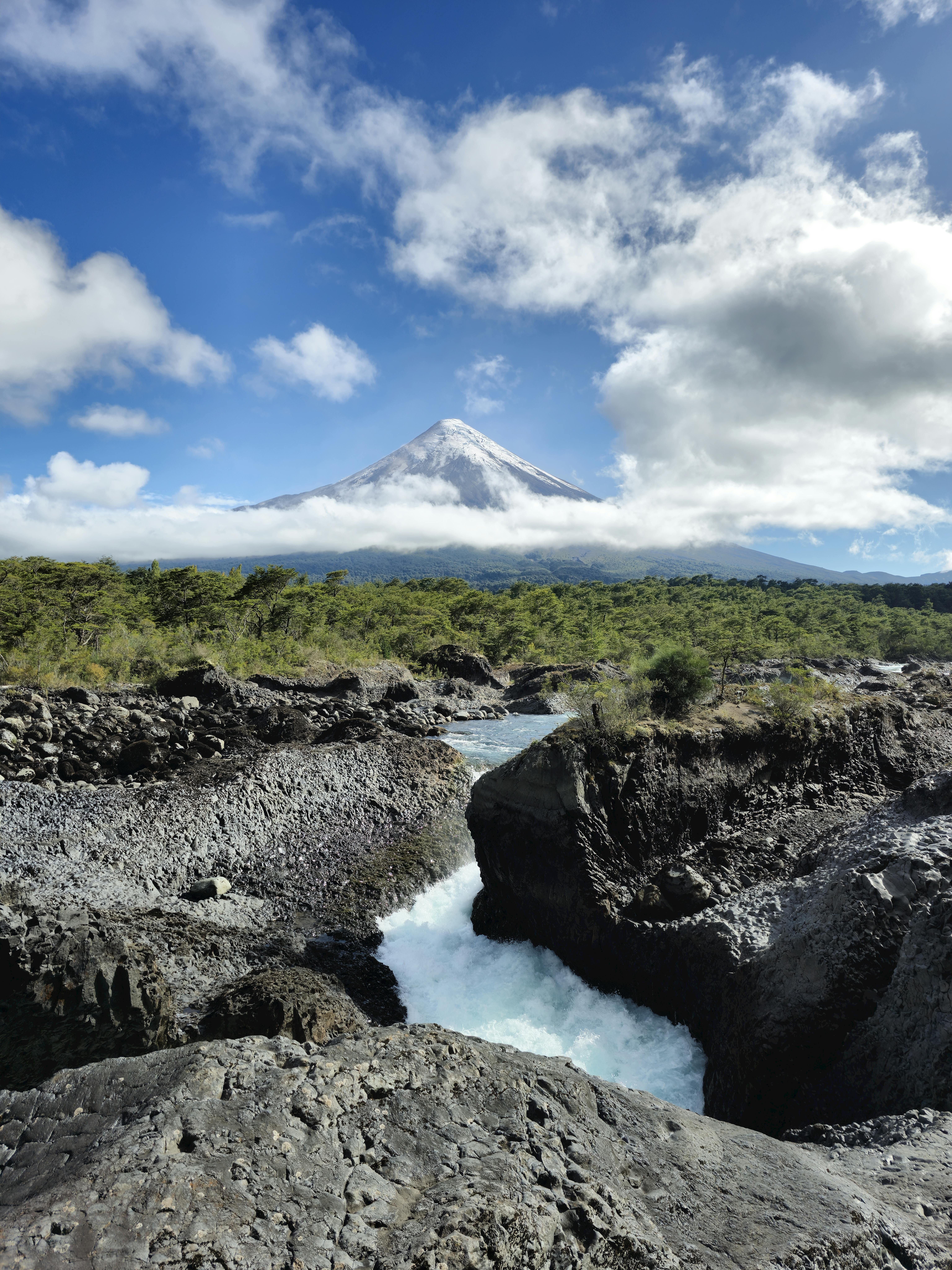 Beirando o Lago Llanquihue até Ensenada, Desde aqui seguimos para visitar os Saltos de Água do Rio Petrohue, (ingressos não incluídos), localizado dentro do Parque Nacional Vicente Perez Rosales e continuar até o Lago de Todos os Santos ou Esmeralda, com uma impressionante vista do Vulcão Osorno.